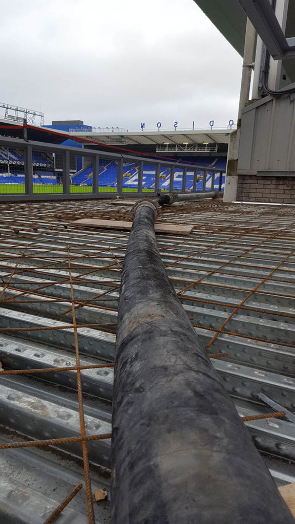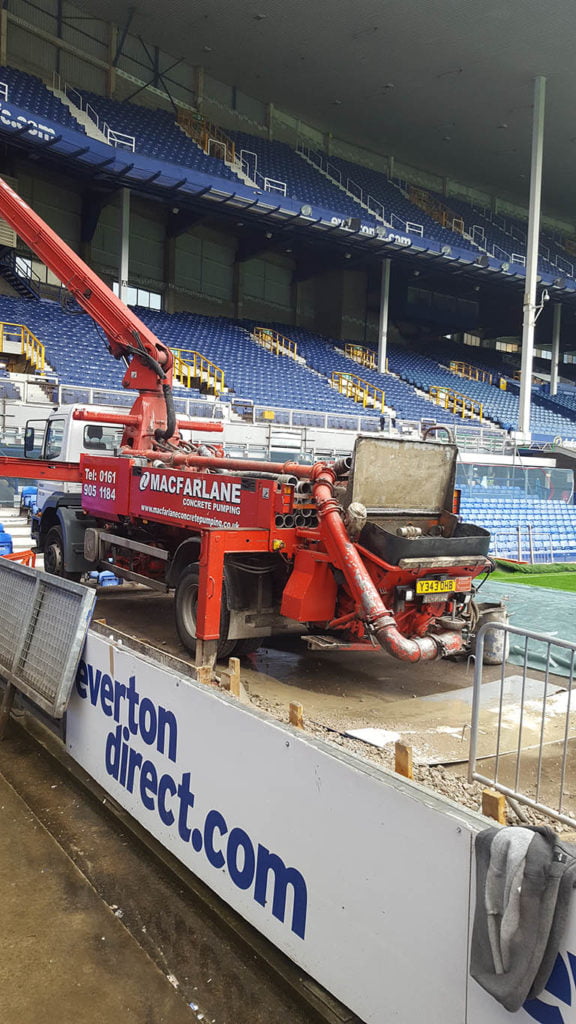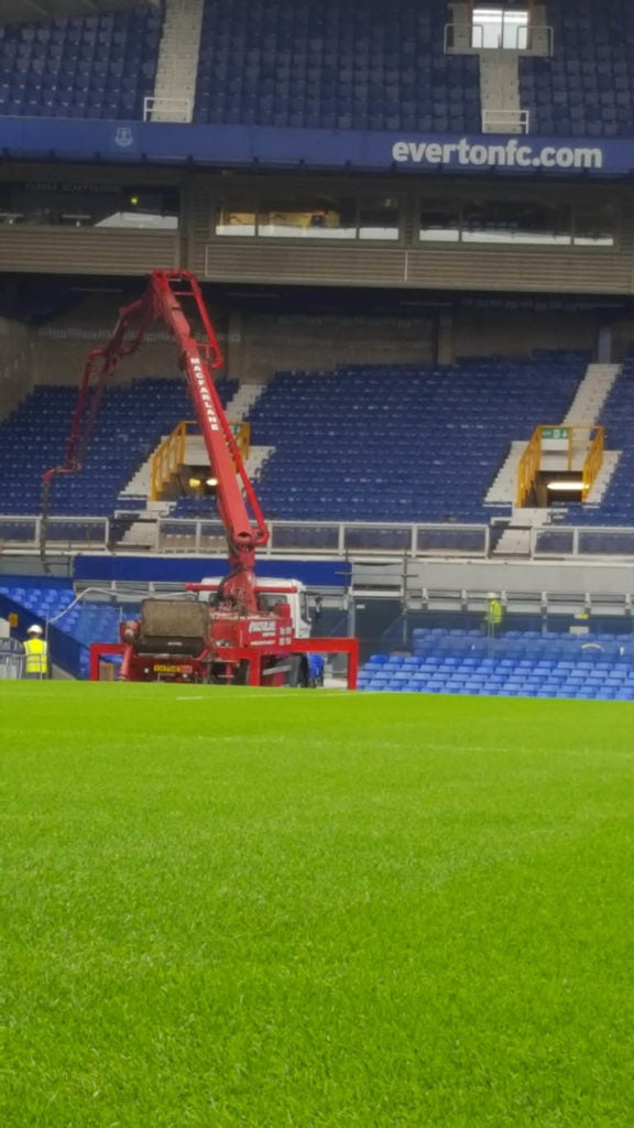 Consideration was given to the job requirements on this project due to the distance we needed to reach. We didn’t have a great deal of space, due to the access and ground limitations – the entry was between the pitch and the seating area behind the goal posts.